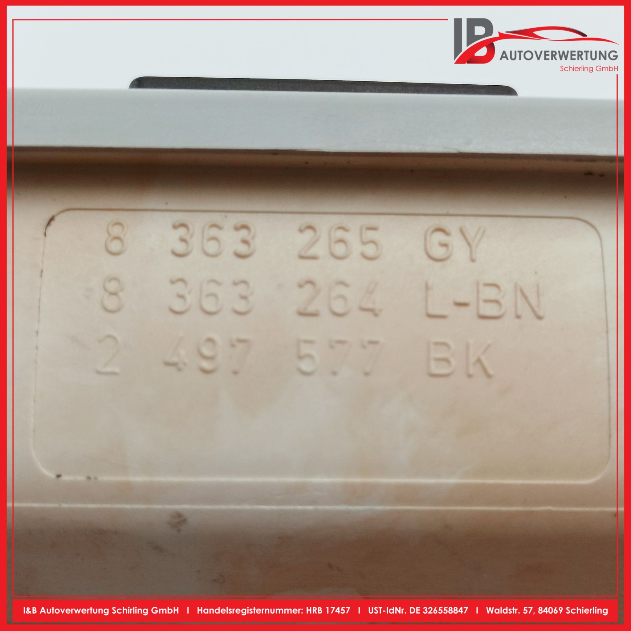 Hierbei handelt es sich um gebrauchte Ersatzteile! - keine Neuware. Das heißt, dass bei gewissen Ersatzteilen wie z.B. lackierte Karosserieteile, Innenausstattung, Beleuchtung usw., aus logistischen Gründen nicht zuvermeiden ist, dass sich Kratzer, kleine Dellen oder sonstige kleinere Mängel auf den Ersatzteilen befinden können.