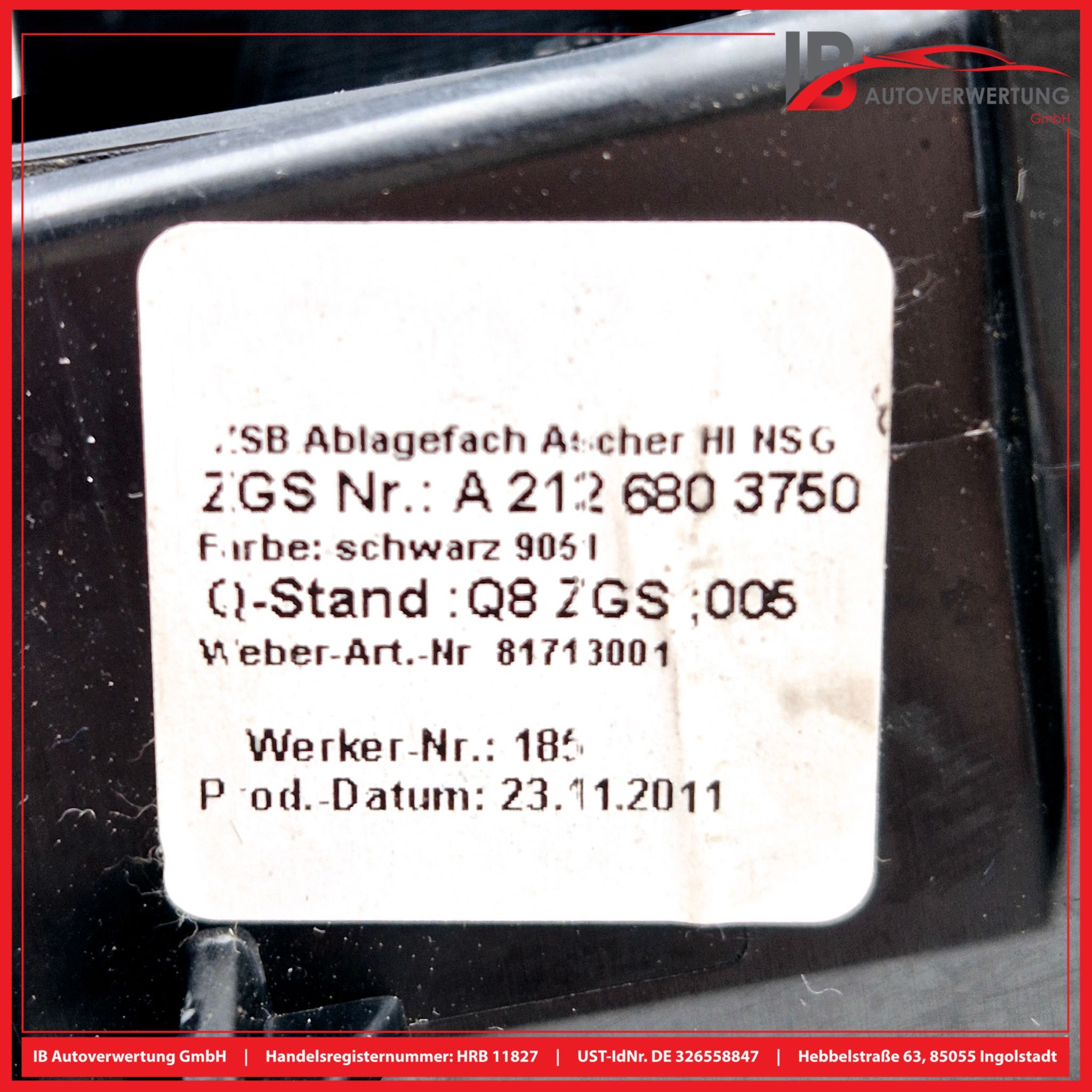 Aschenbecher Hinten SchwarzMERCEDES BENZ E-KLASSE W212 E220 CDI