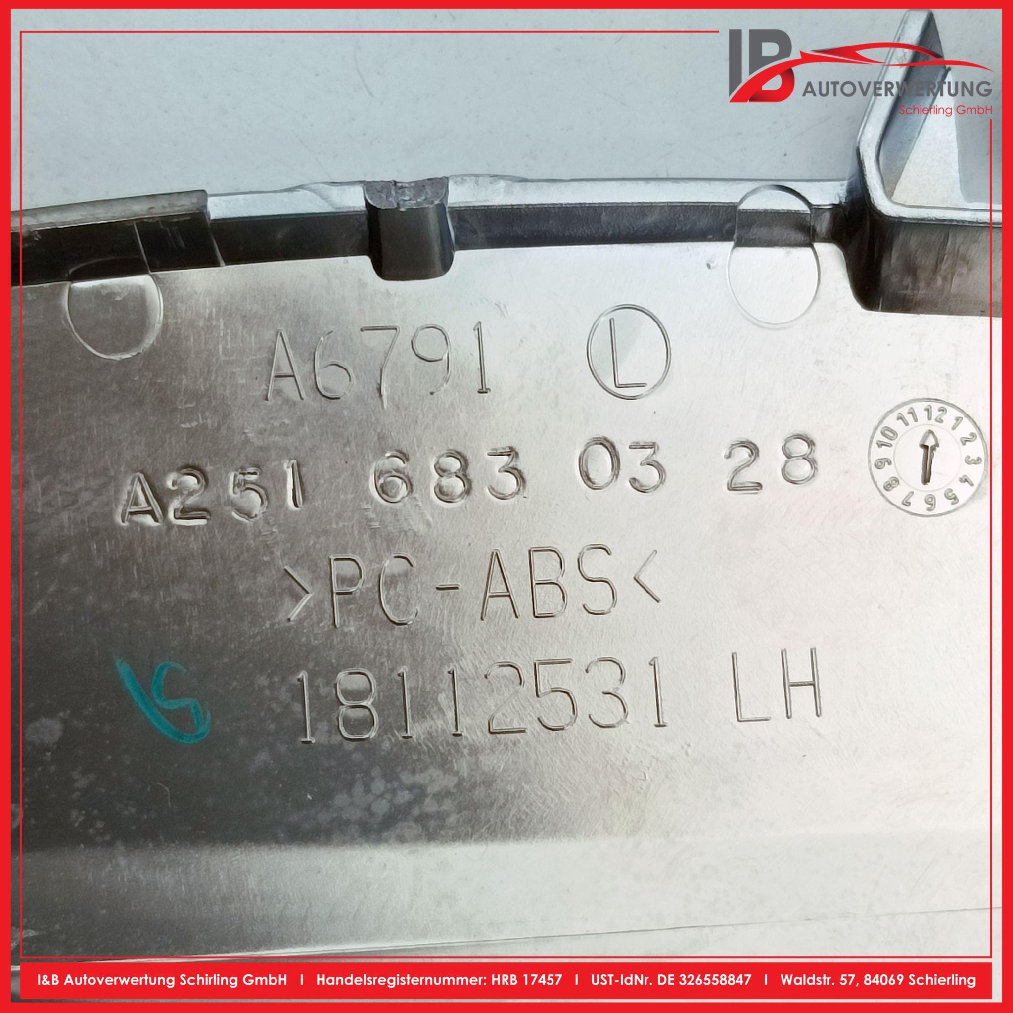 Hierbei handelt es sich um gebrauchte Ersatzteile! - keine Neuware. Das heißt, dass bei gewissen Ersatzteilen wie z.B. lackierte Karosserieteile, Innenausstattung, Beleuchtung usw., aus logistischen Gründen nicht zuvermeiden ist, dass sich Kratzer, kleine Dellen oder sonstige kleinere Mängel auf den Ersatzteilen befinden können.