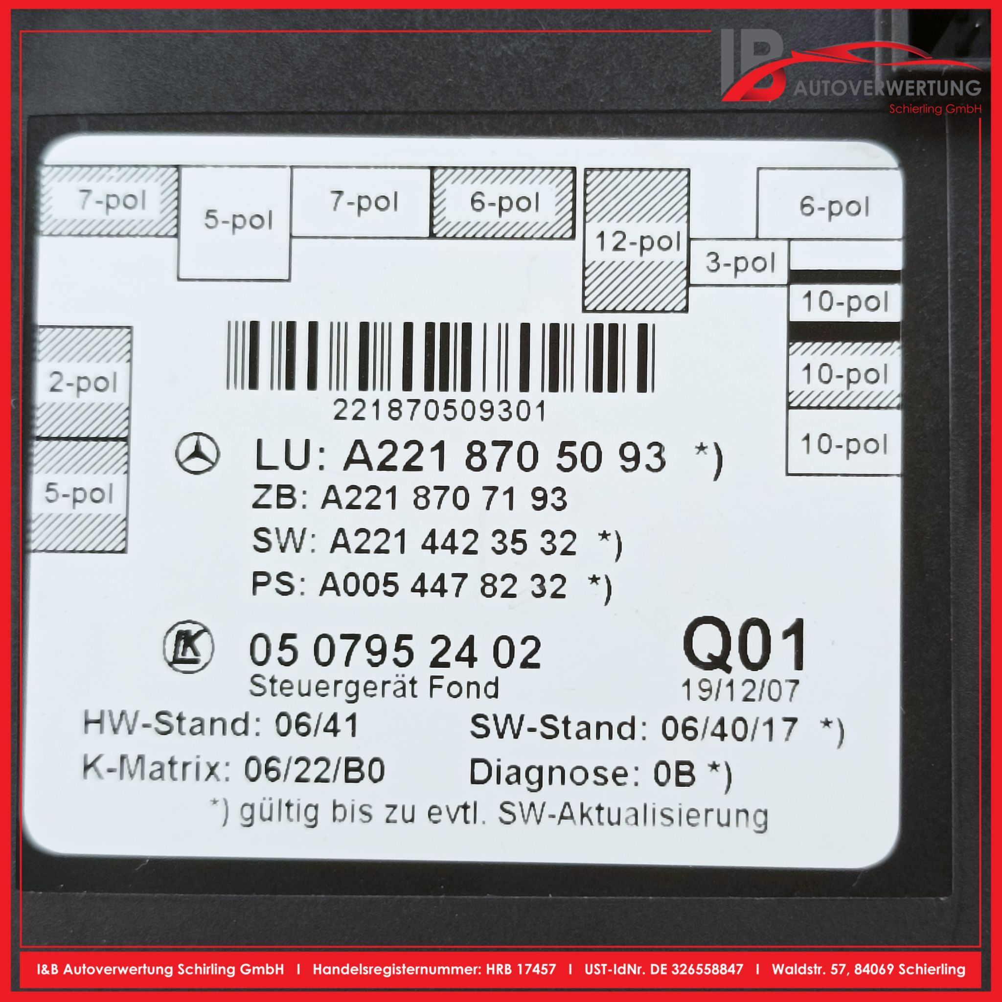 Hierbei handelt es sich um gebrauchte Ersatzteile! - keine Neuware. Das heißt, dass bei gewissen Ersatzteilen wie z.B. lackierte Karosserieteile, Innenausstattung, Beleuchtung usw., aus logistischen Gründen nicht zuvermeiden ist, dass sich Kratzer, kleine Dellen oder sonstige kleinere Mängel auf den Ersatzteilen befinden können.