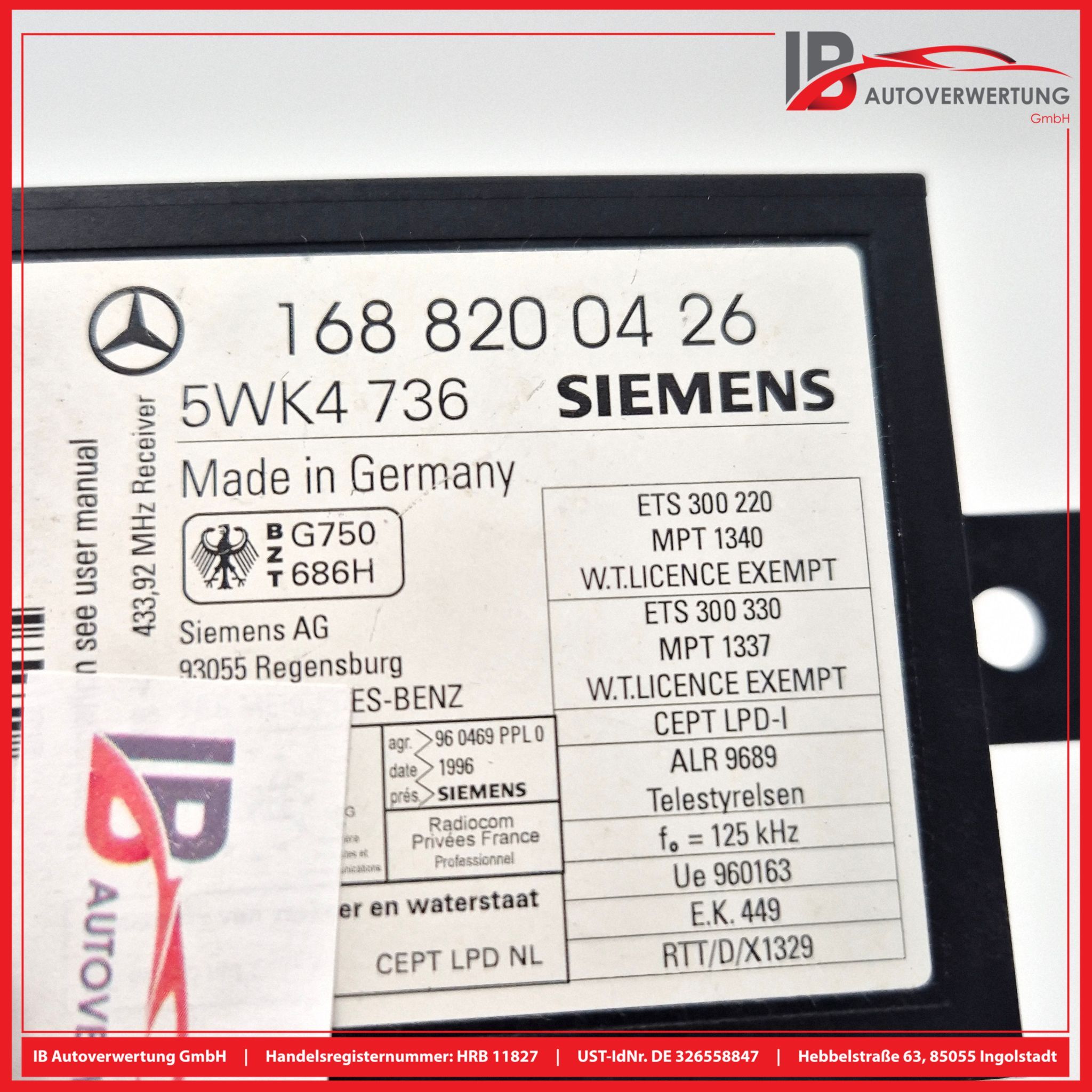 Hierbei handelt es sich um gebrauchte Ersatzteile! - keine Neuware. Das heißt, dass bei gewissen Ersatzteilen wie z.B. lackierte Karosserieteile, Innenausstattung, Beleuchtung usw., aus logistischen Gründen nicht zuvermeiden ist, dass sich Kratzer, kleine Dellen oder sonstige kleinere Mängel auf den Ersatzteilen befinden können.