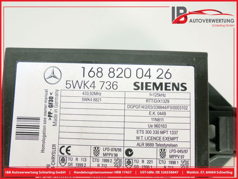 Steuergerät WegfahrsperreMERCEDES BENZ A-KLASSE W168